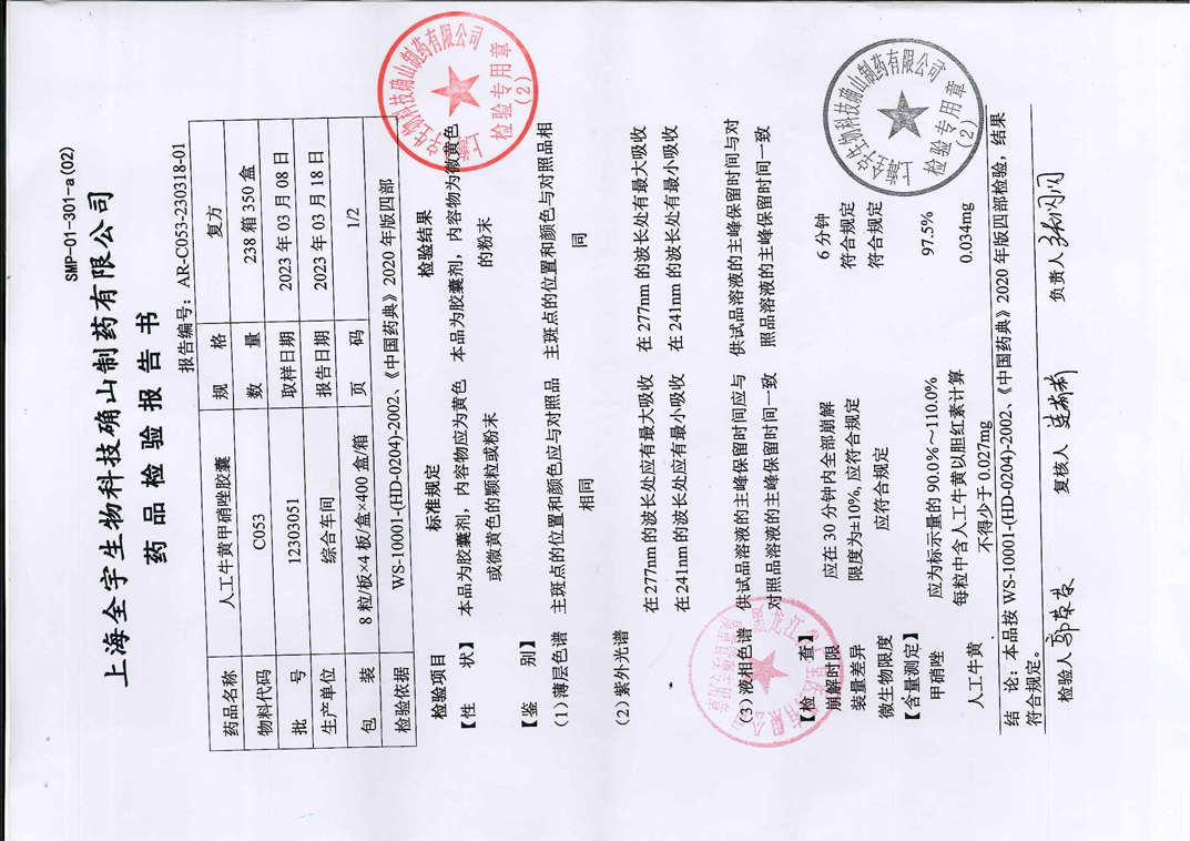 人工牛黄甲硝唑胶囊1