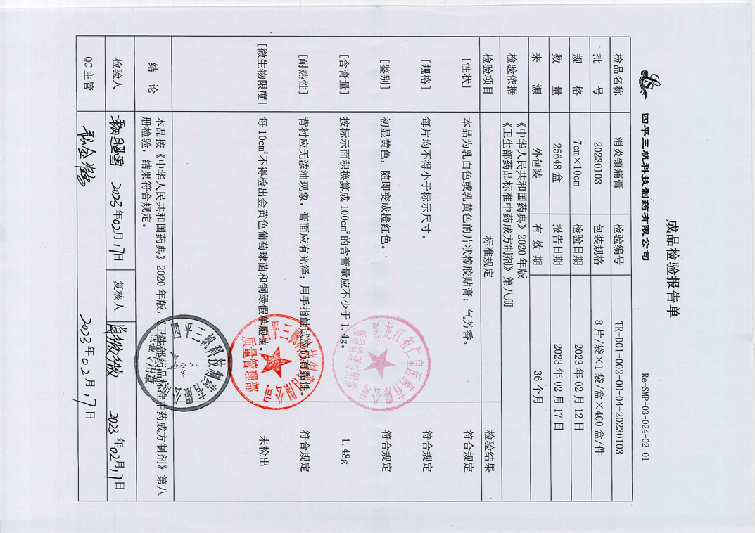 消炎镇痛膏20230