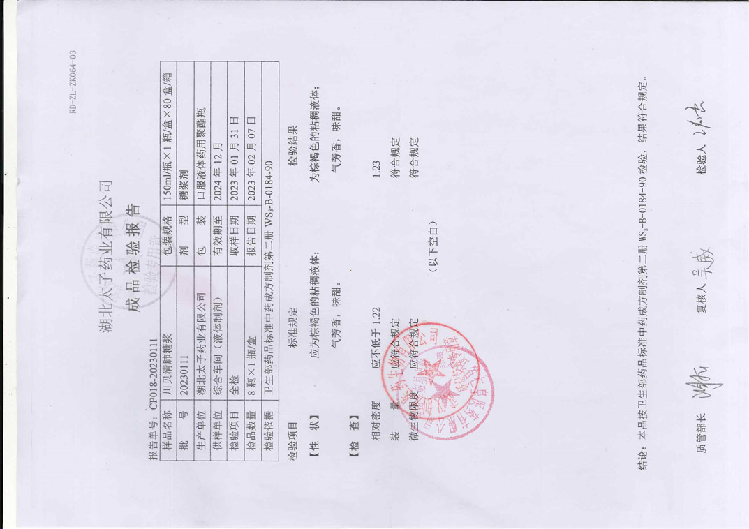 川贝清肺糖浆2023