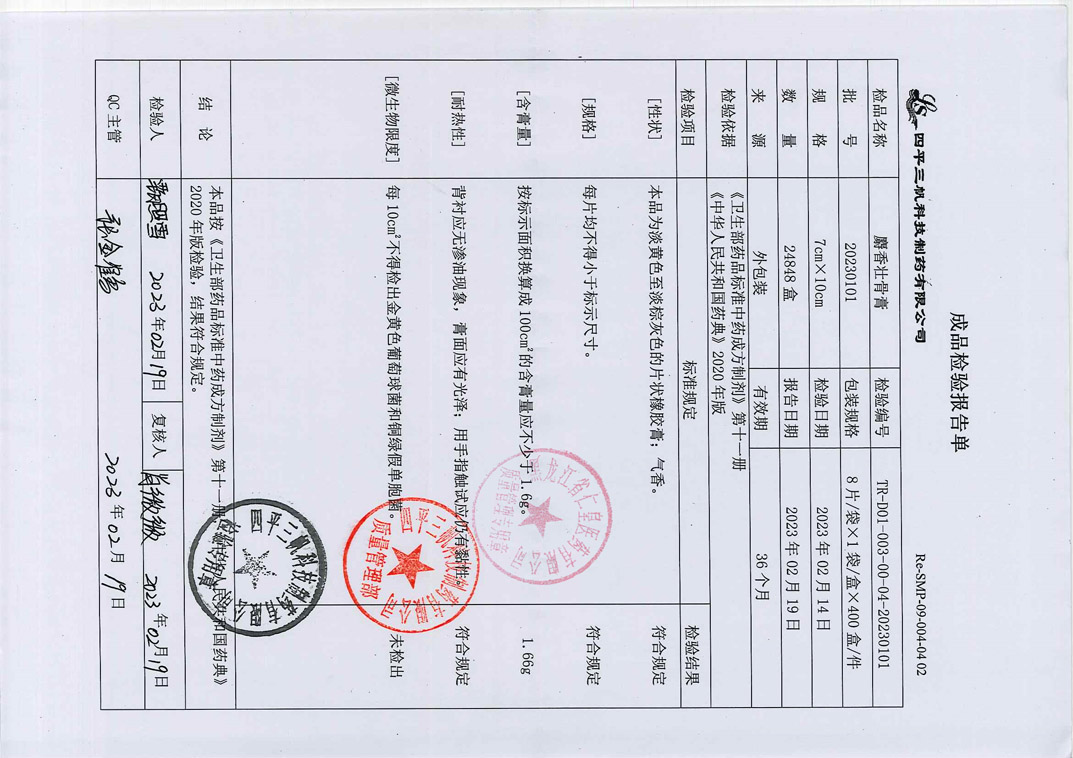 麝香壮骨膏20230
