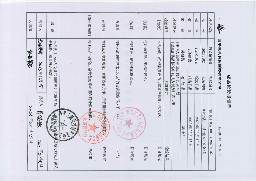 消炎镇痛膏20230