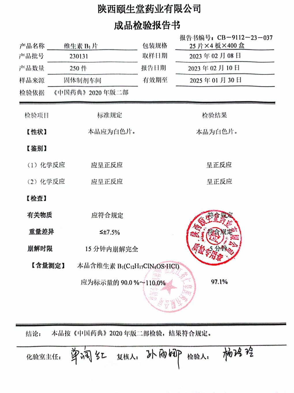维生素B1片2301