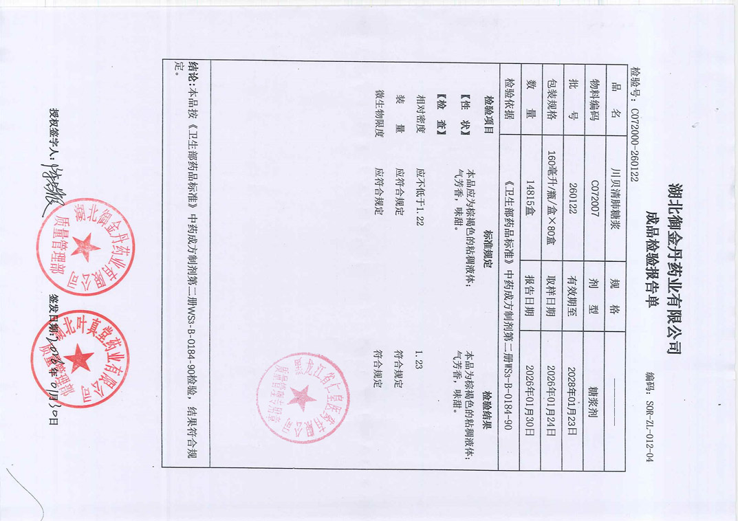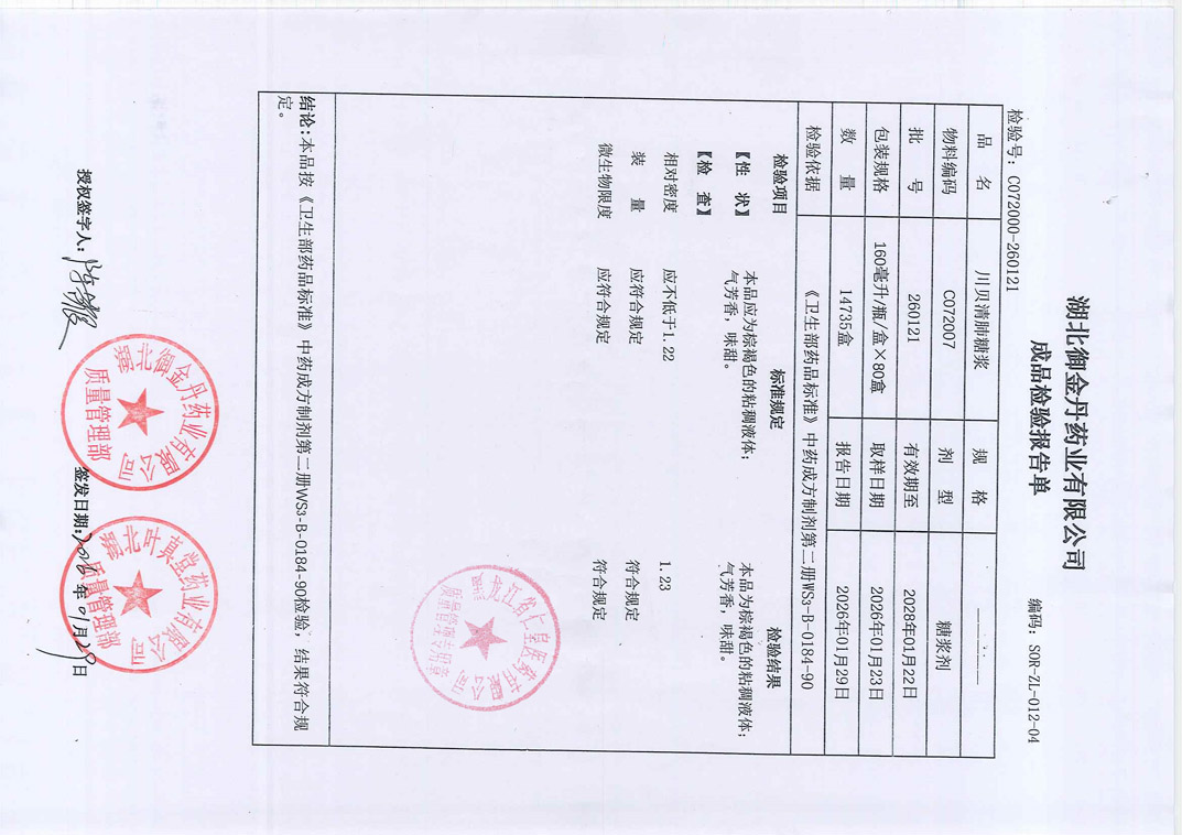 川贝清肺糖浆2601