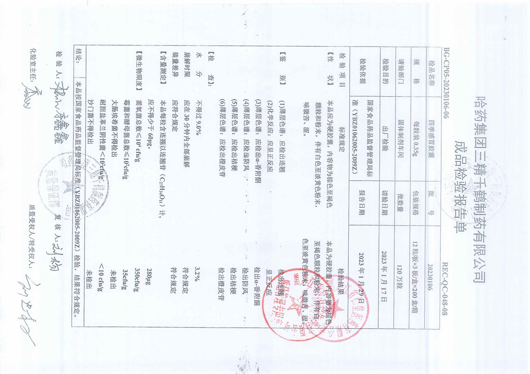 四季感冒胶囊2023