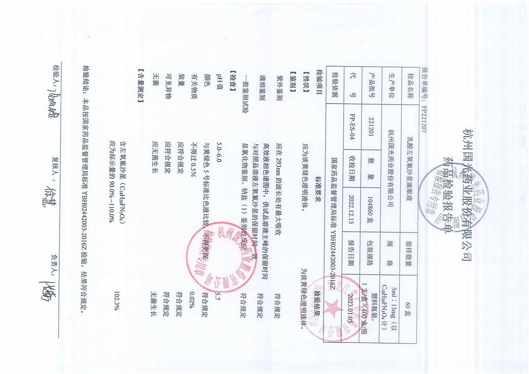 乳酸左氧氟沙星滴眼液