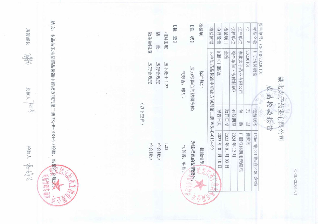 川贝清肺糖浆2023