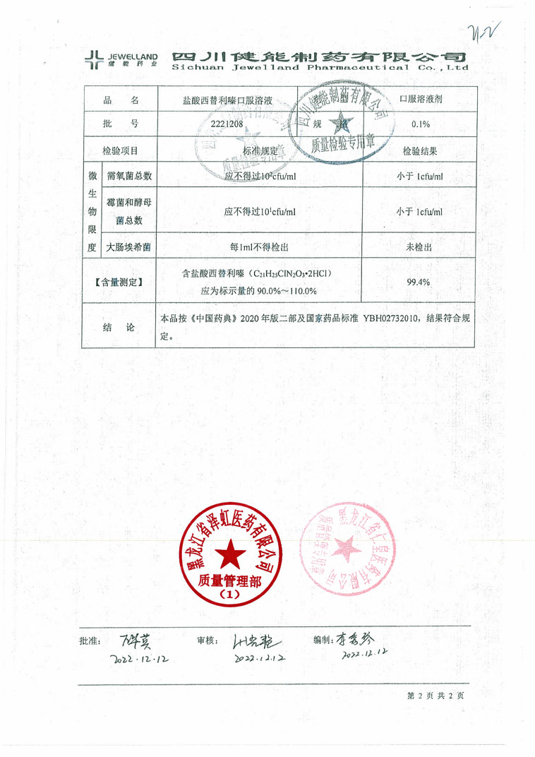 盐酸西替利嗪口服溶液