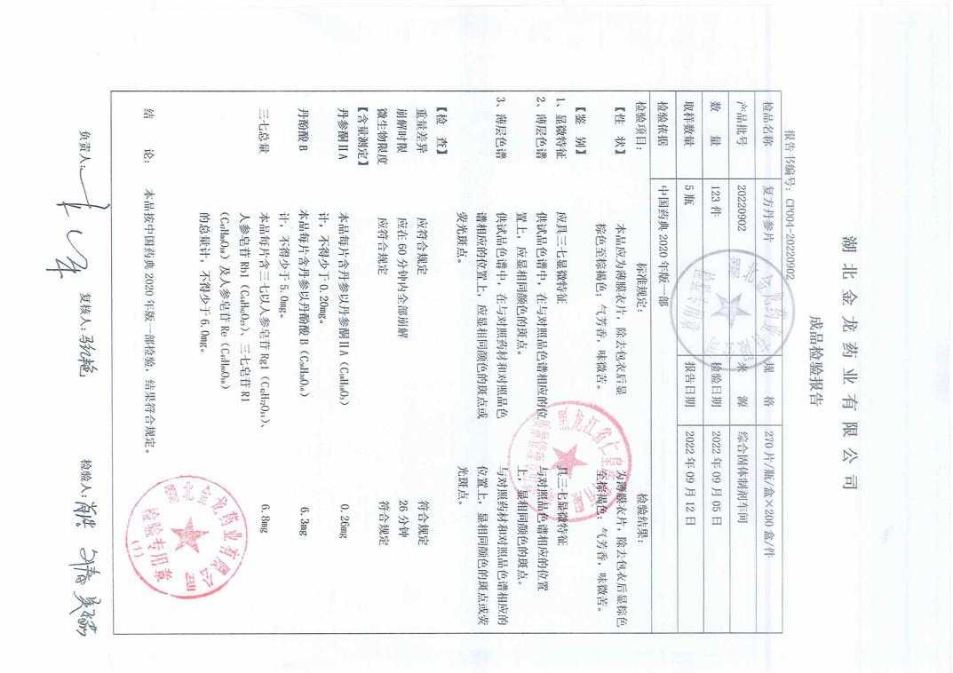 复方丹参片20220