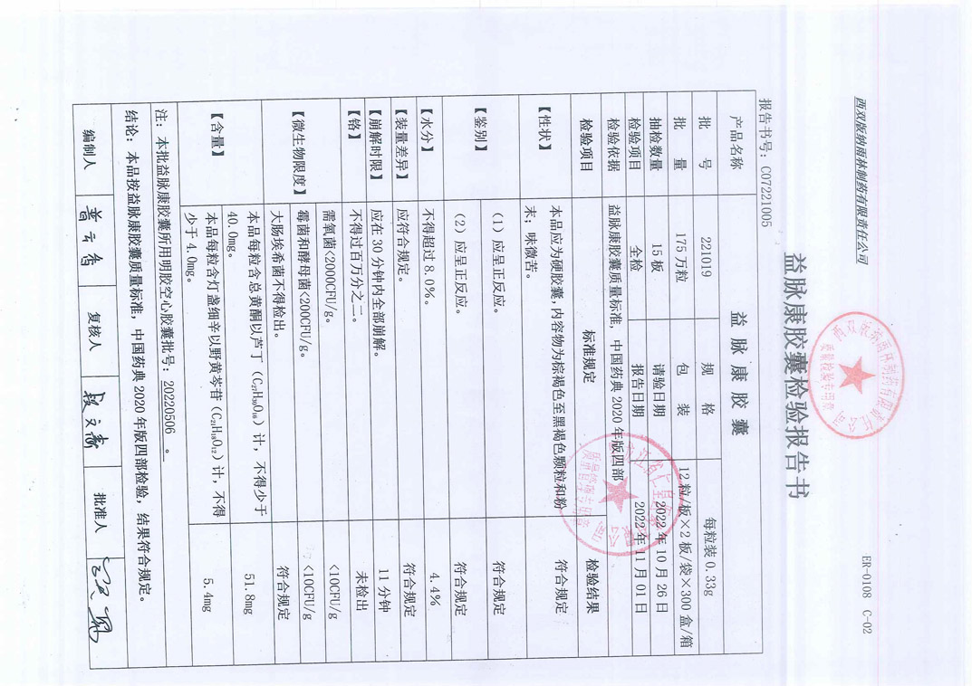 益脉康胶囊22101