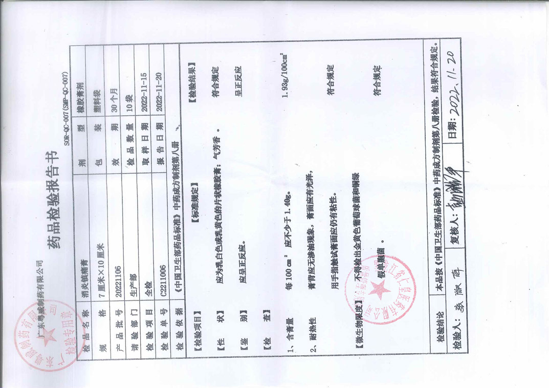消炎镇痛膏20221