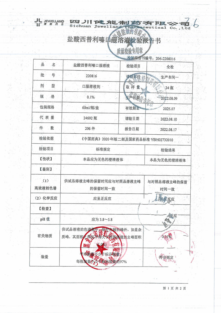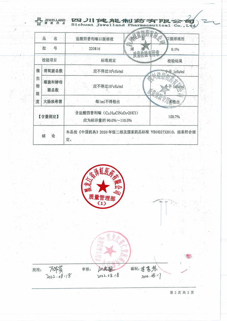 盐酸西替利嗪口服溶液
