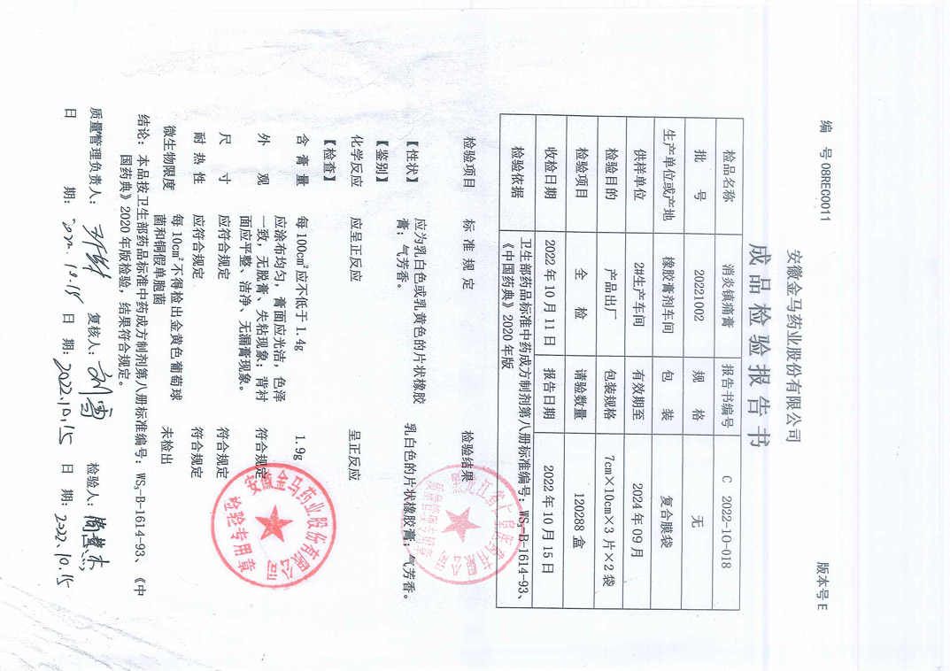消炎镇痛膏20221