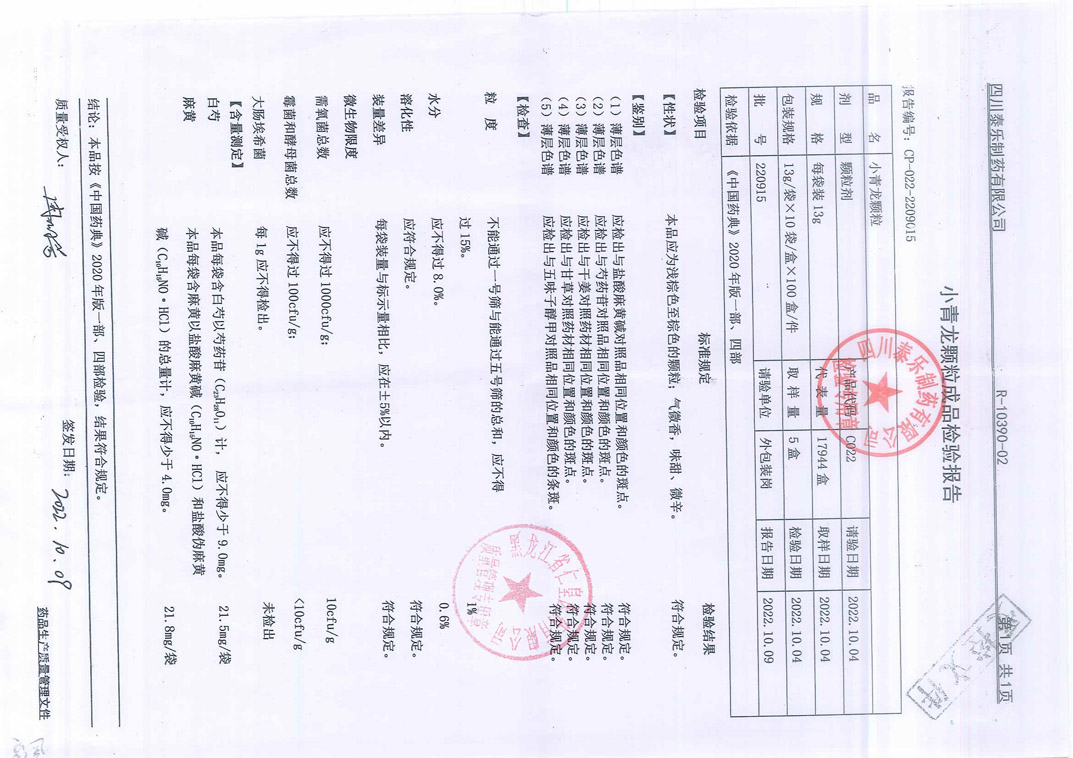 小青龙颗粒22091