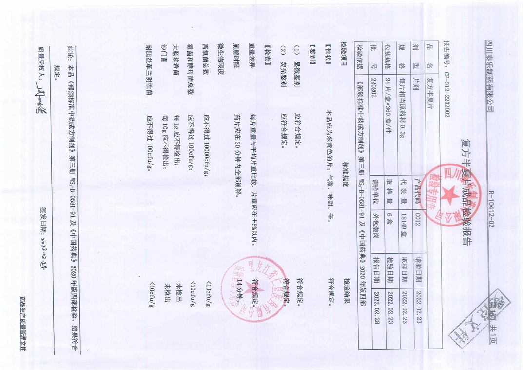复方半夏片22020