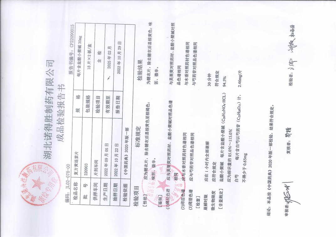 复方黄连素片2209