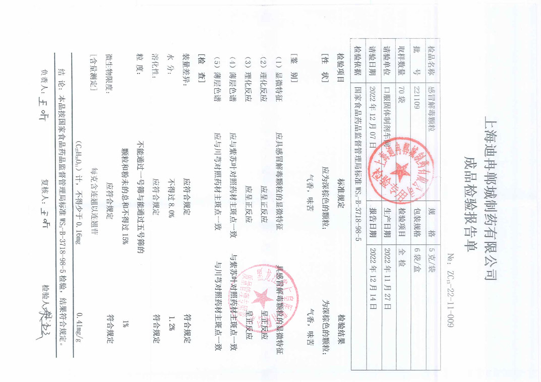 感冒解毒颗粒2211