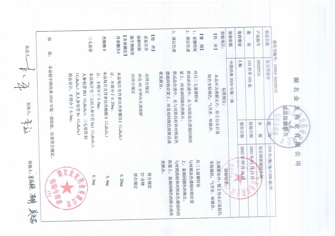 复方丹参片20220