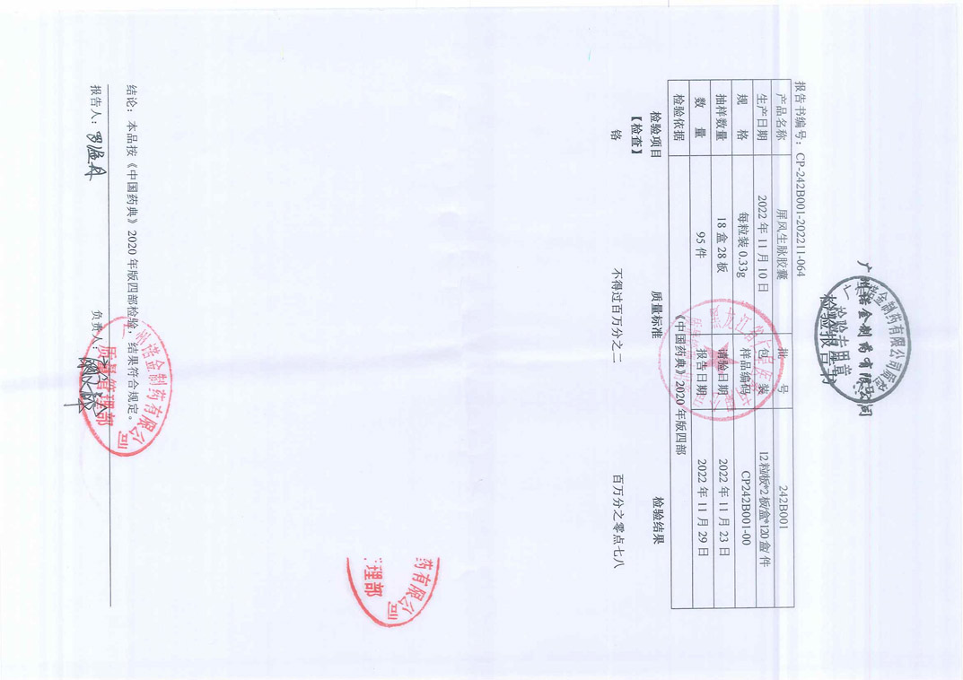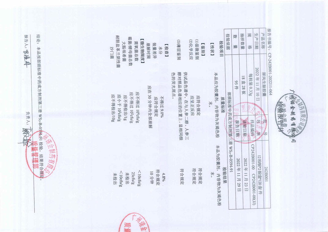 屏风生脉胶囊242B
