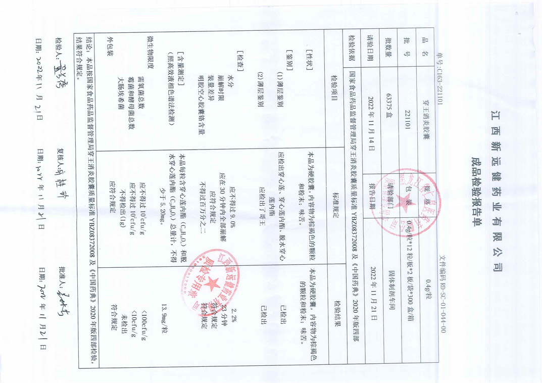 穿王消炎胶囊2211