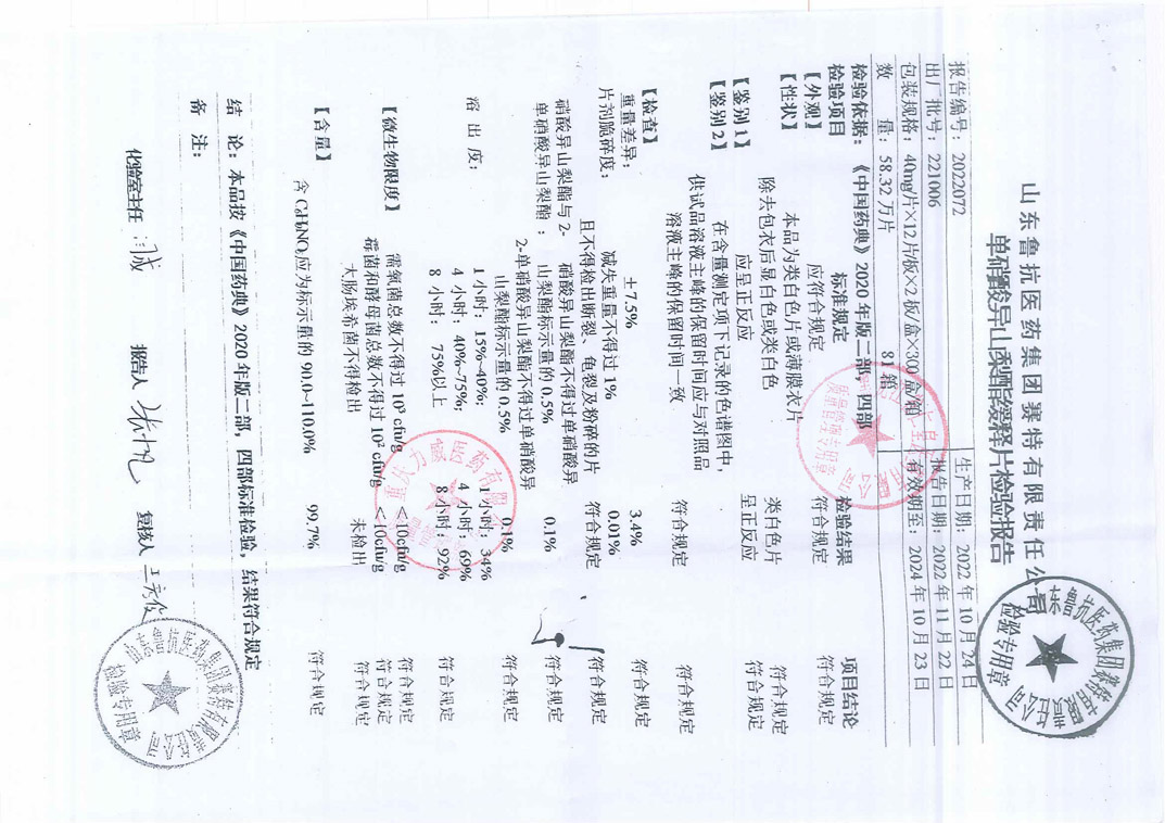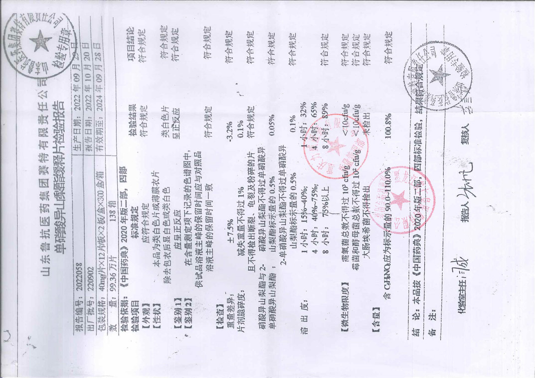单硝酸异山梨酯缓释片