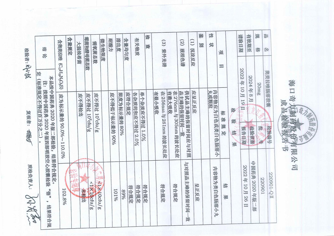 奥美拉唑肠溶胶囊22