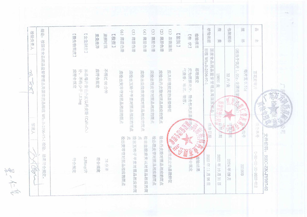 百花定喘片22100