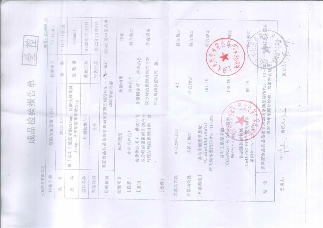 氨酚伪麻那敏分散片2