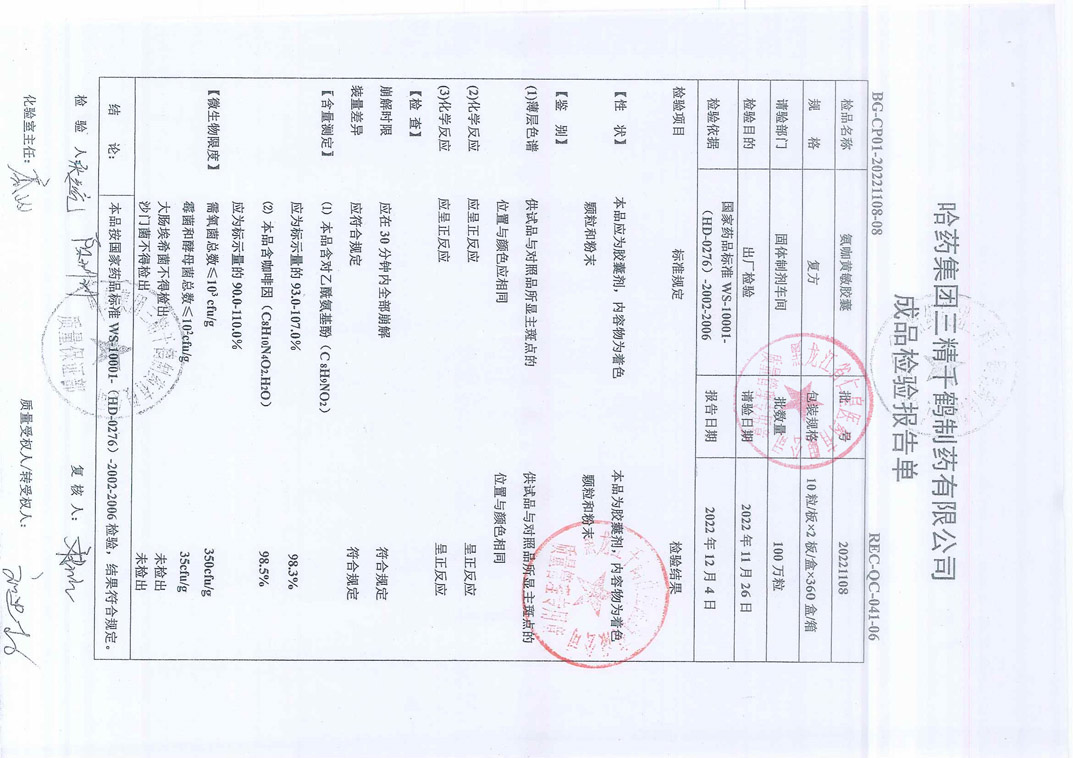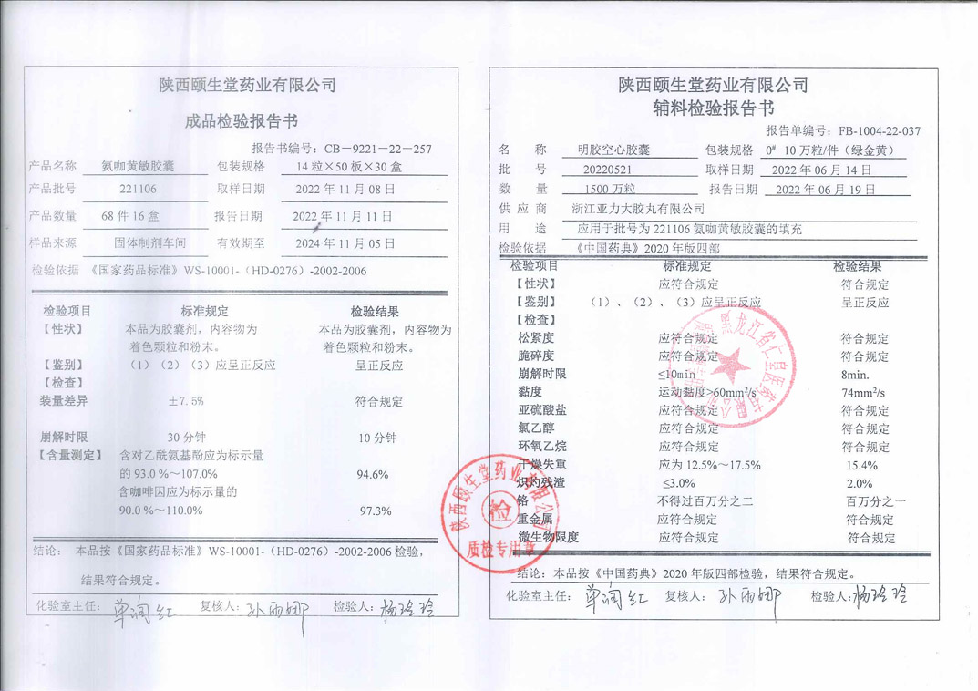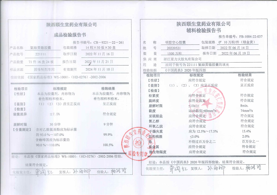氨咖黄敏胶囊2022