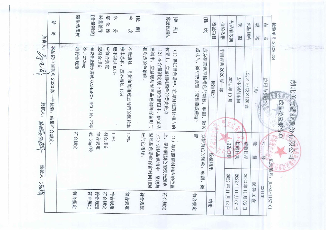 益母草颗粒22110