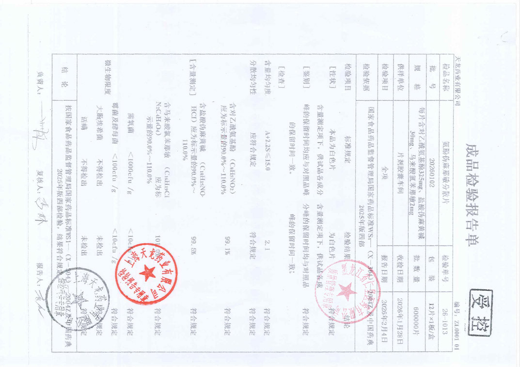 氨酚伪麻那敏分散片2