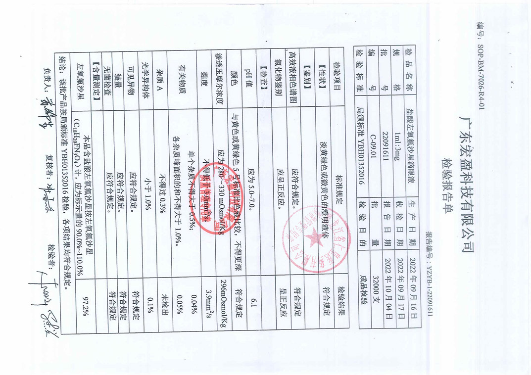 盐酸左氧氟沙星滴眼液