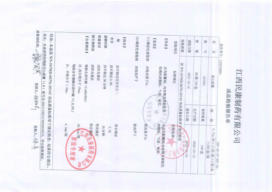 莲心胶囊221001