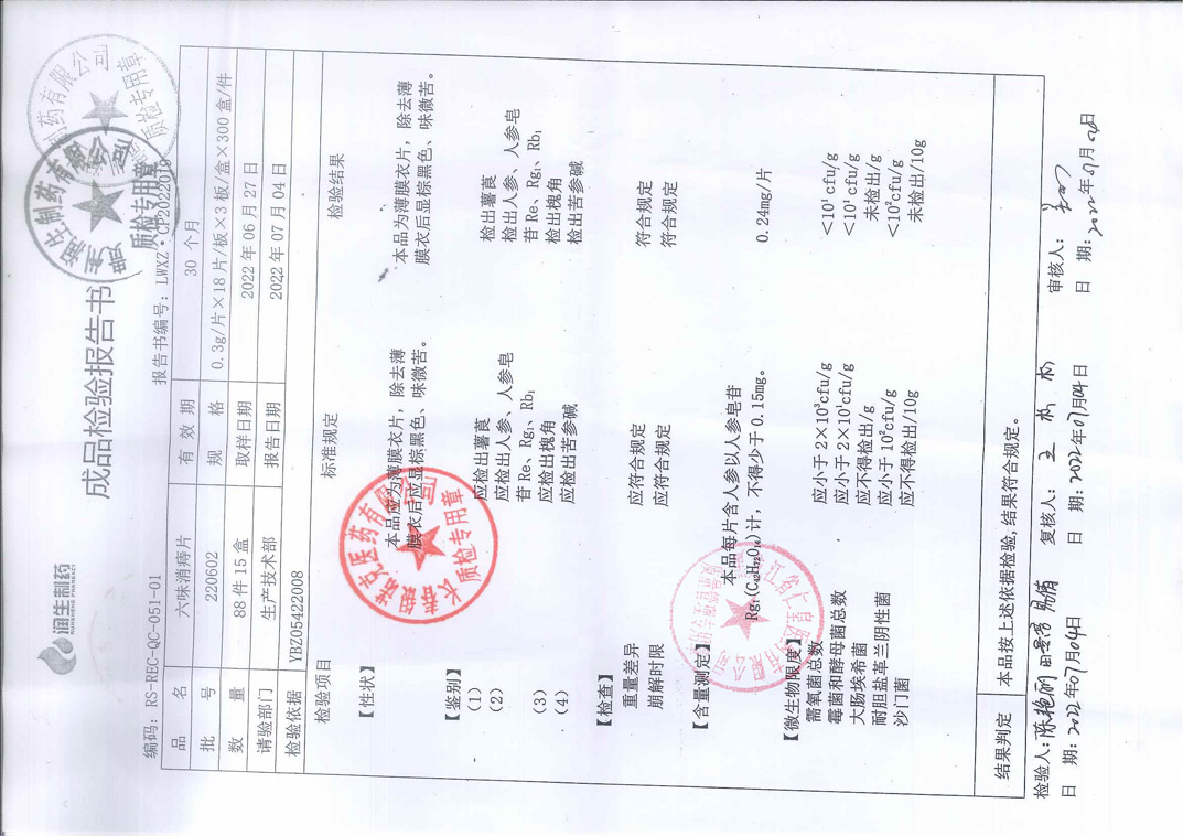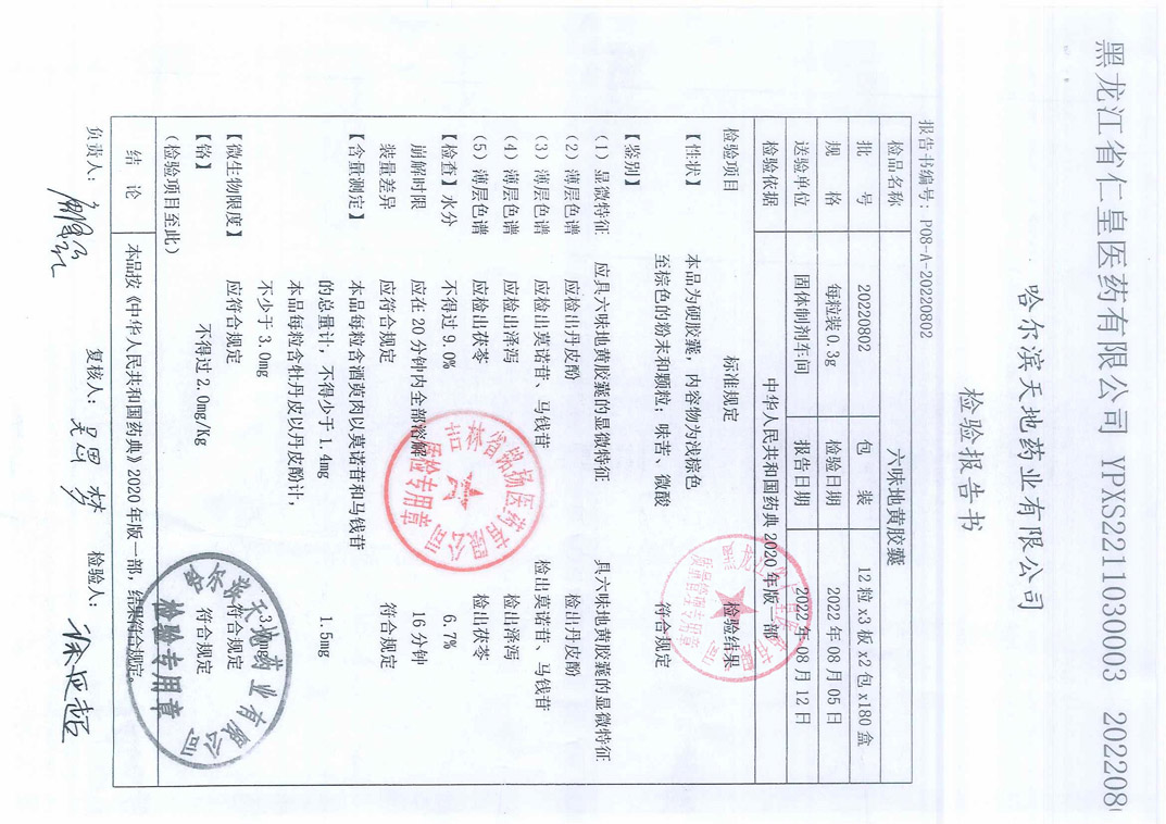 六味地黄胶囊2022