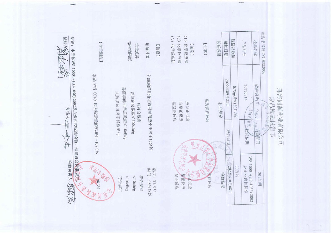 碳酸钙片202209