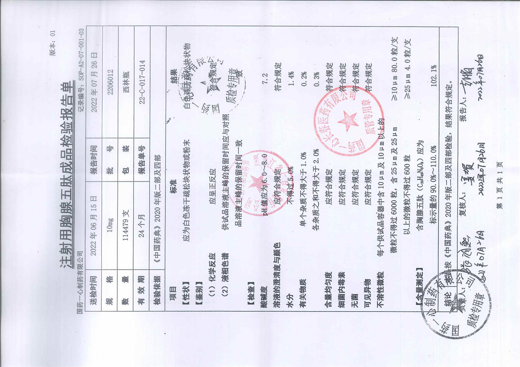注射用胸腺五肽220