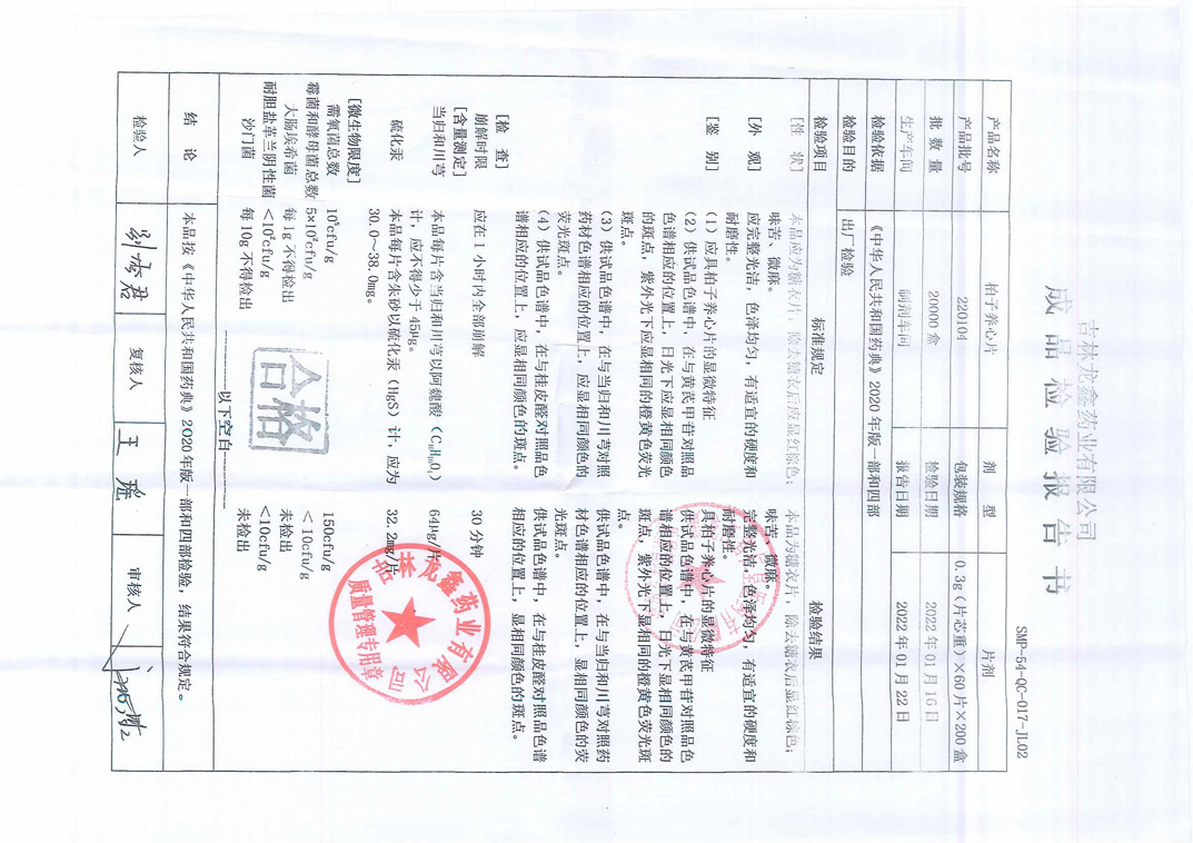 柏子养心片22010