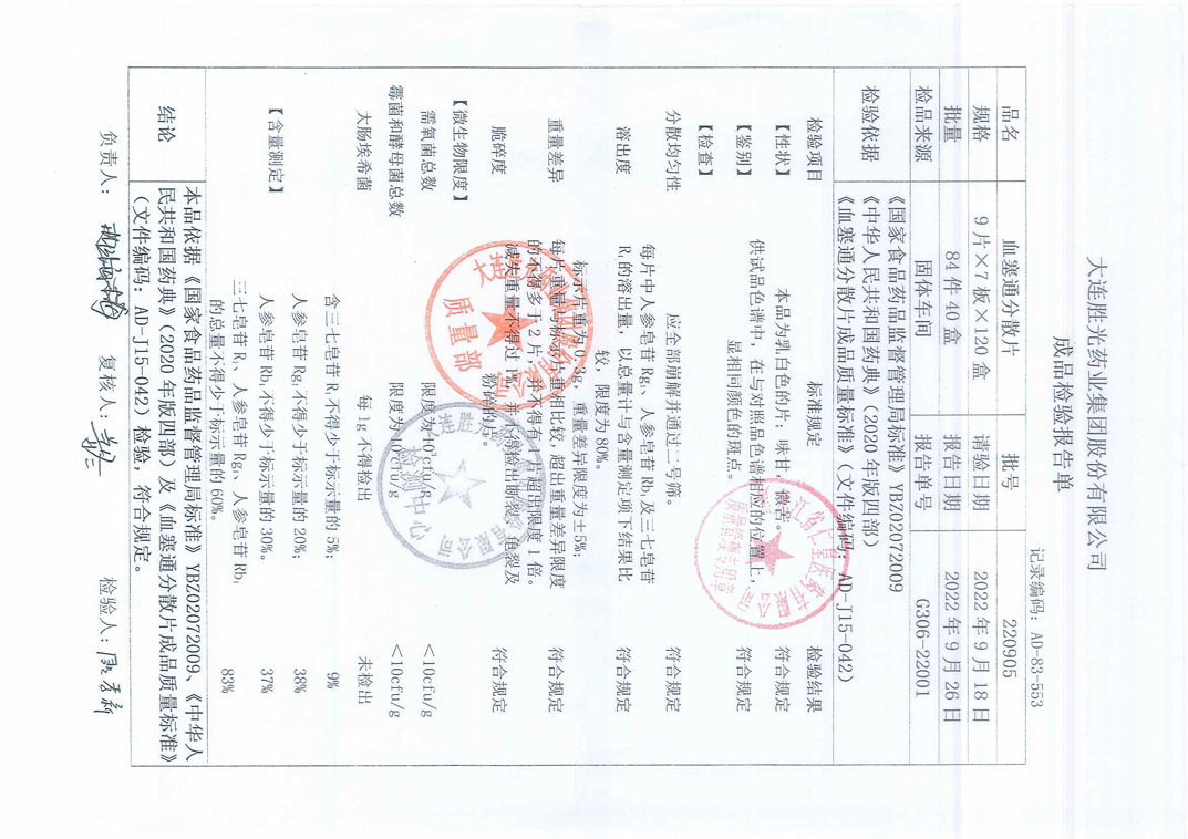 血塞通分散片2209