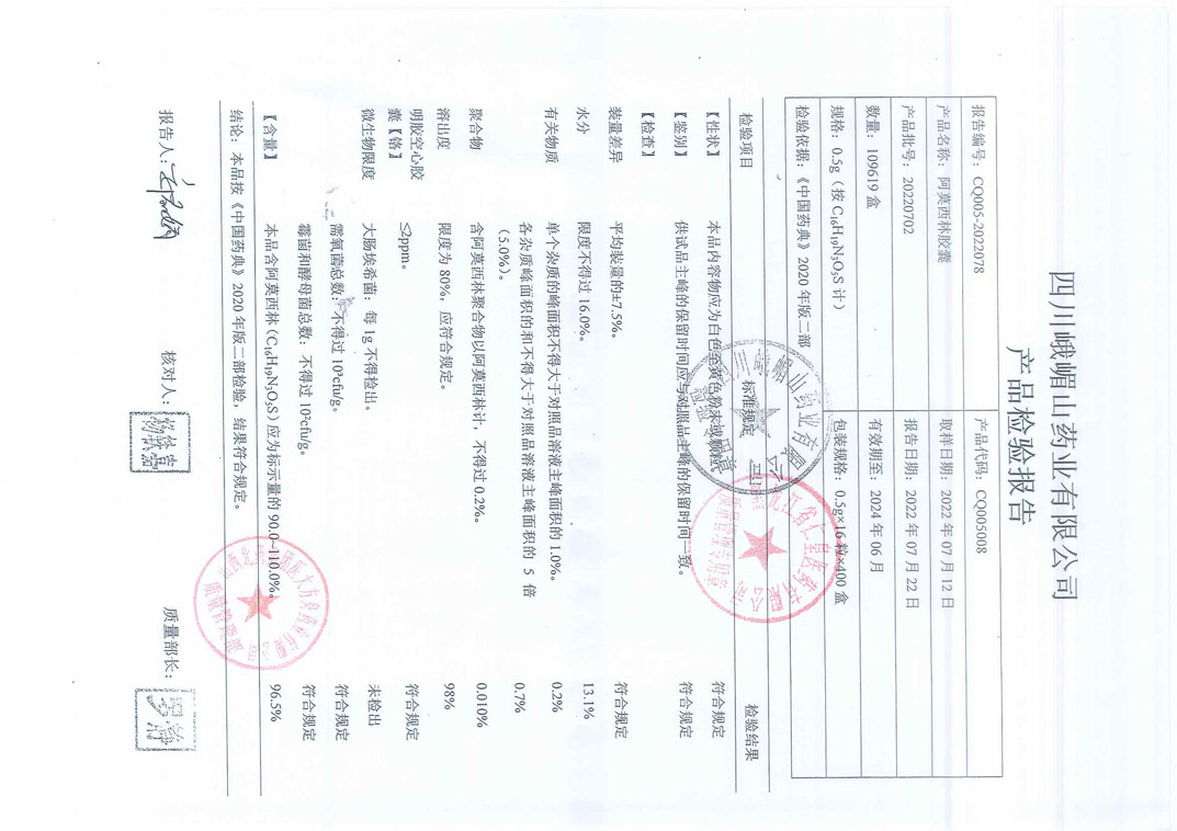 阿莫西林胶囊2022