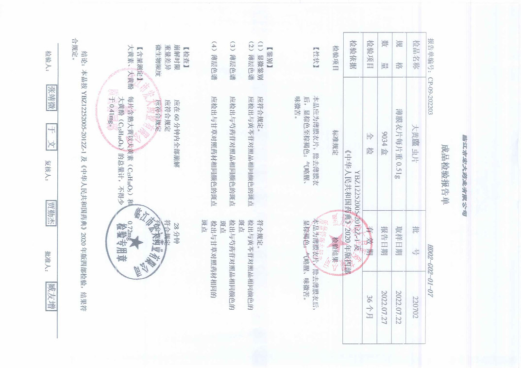 大黄蜇虫片22070