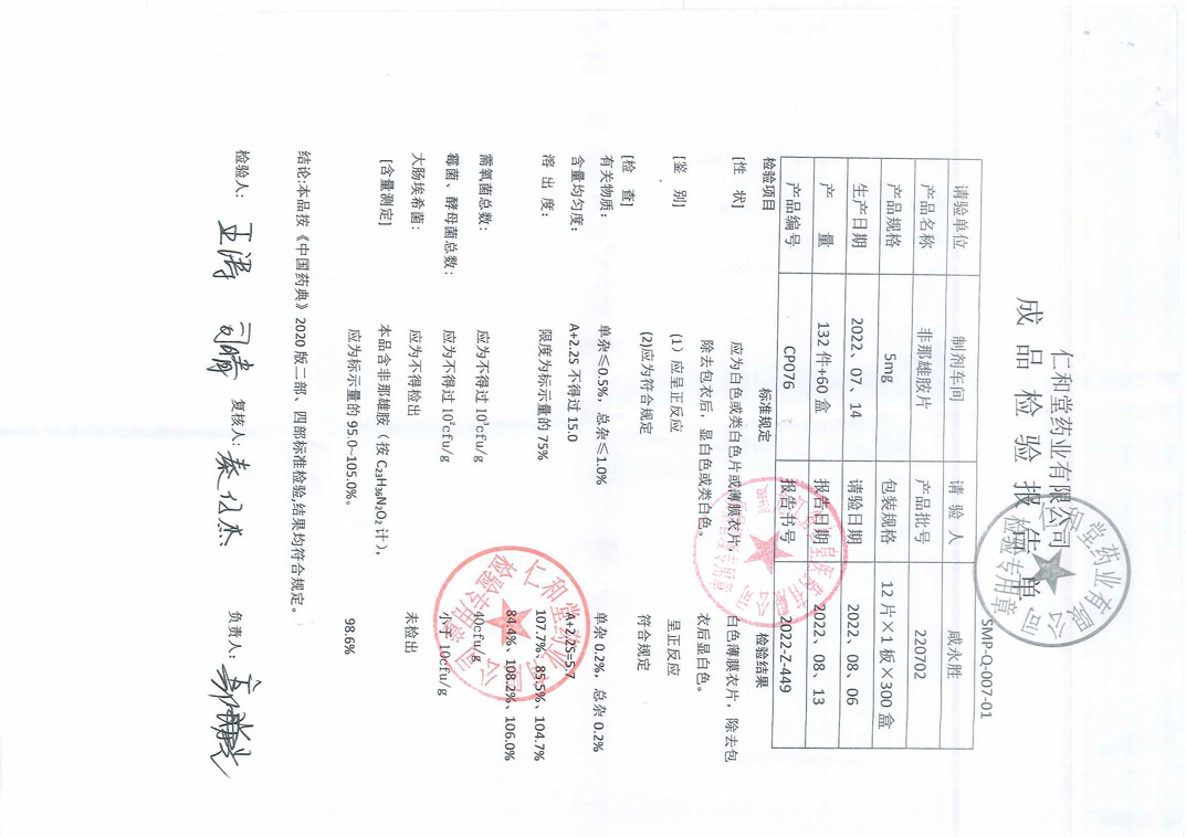 非那雄胺片22070