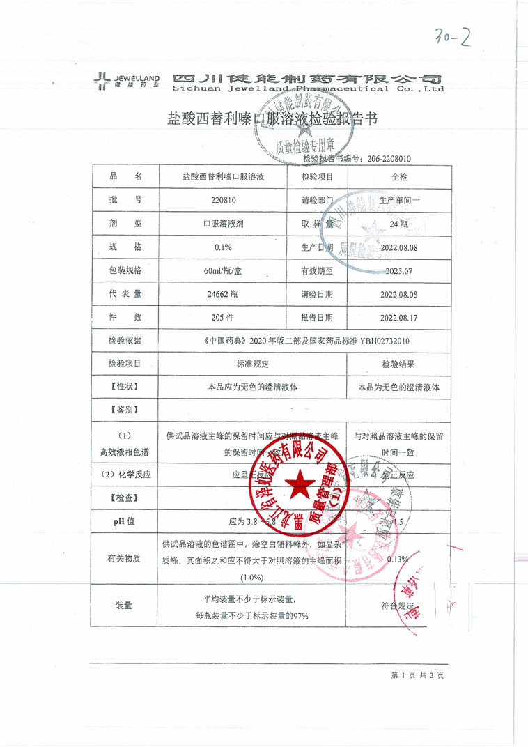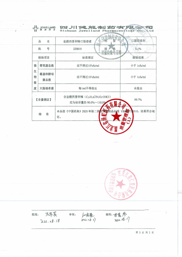 盐酸西替利嗪口服溶液