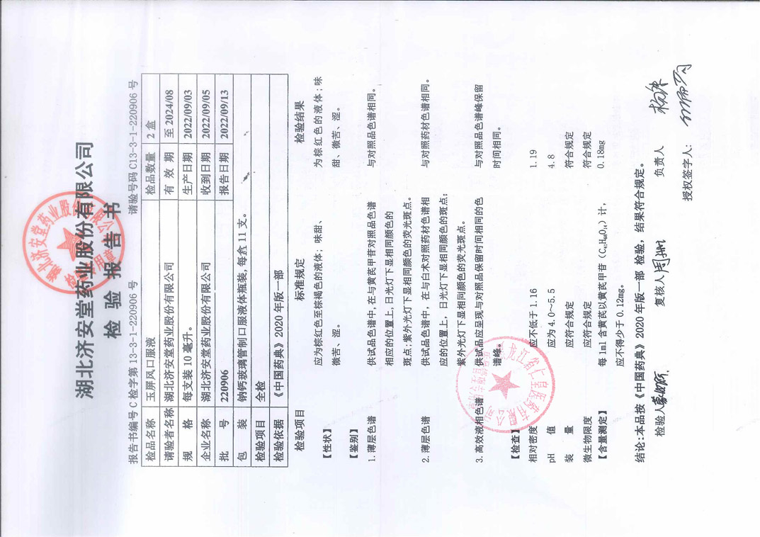 玉屏风口服液2209