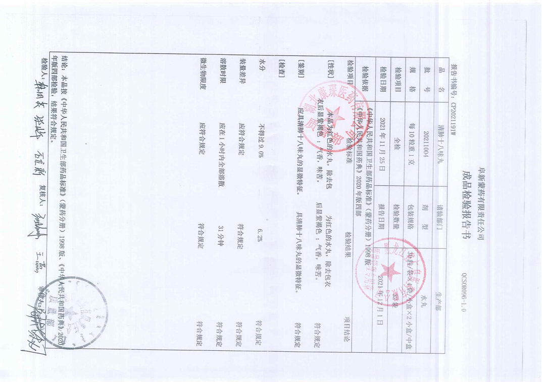 清肺十八味丸2021