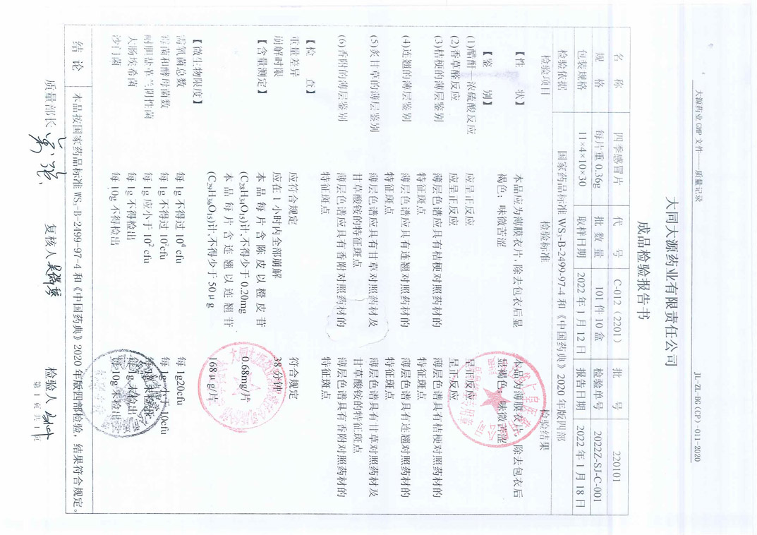 四季感冒片22010