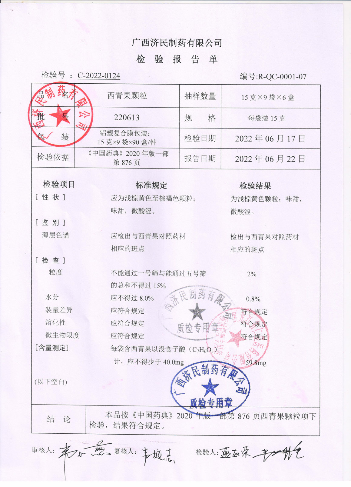 西青果颗粒22061