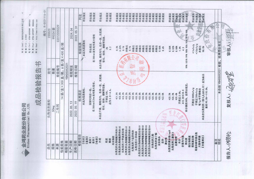 头孢克肟颗粒2205