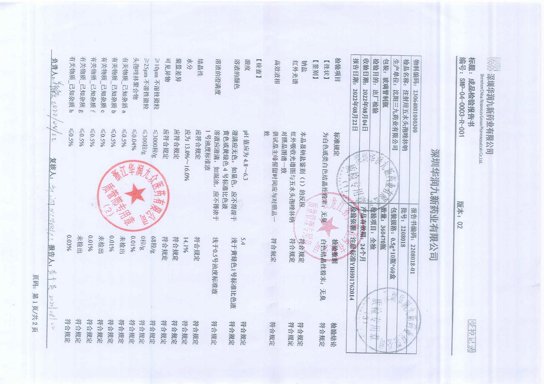 注射用五水头孢唑林钠
