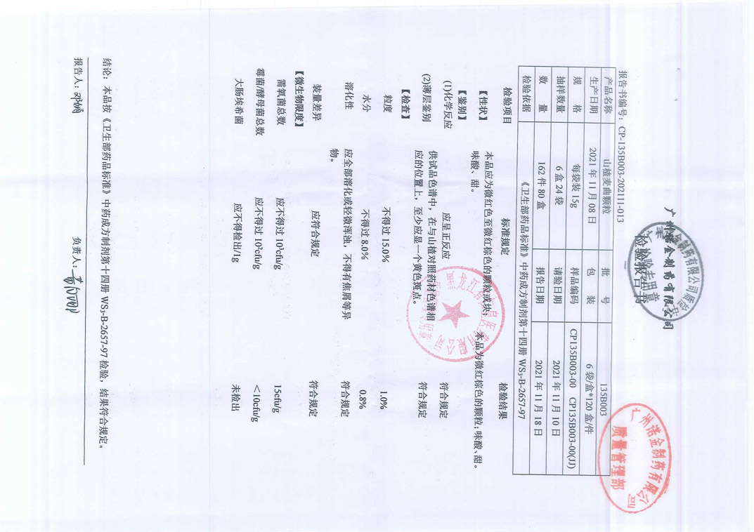 山楂麦曲颗粒135B