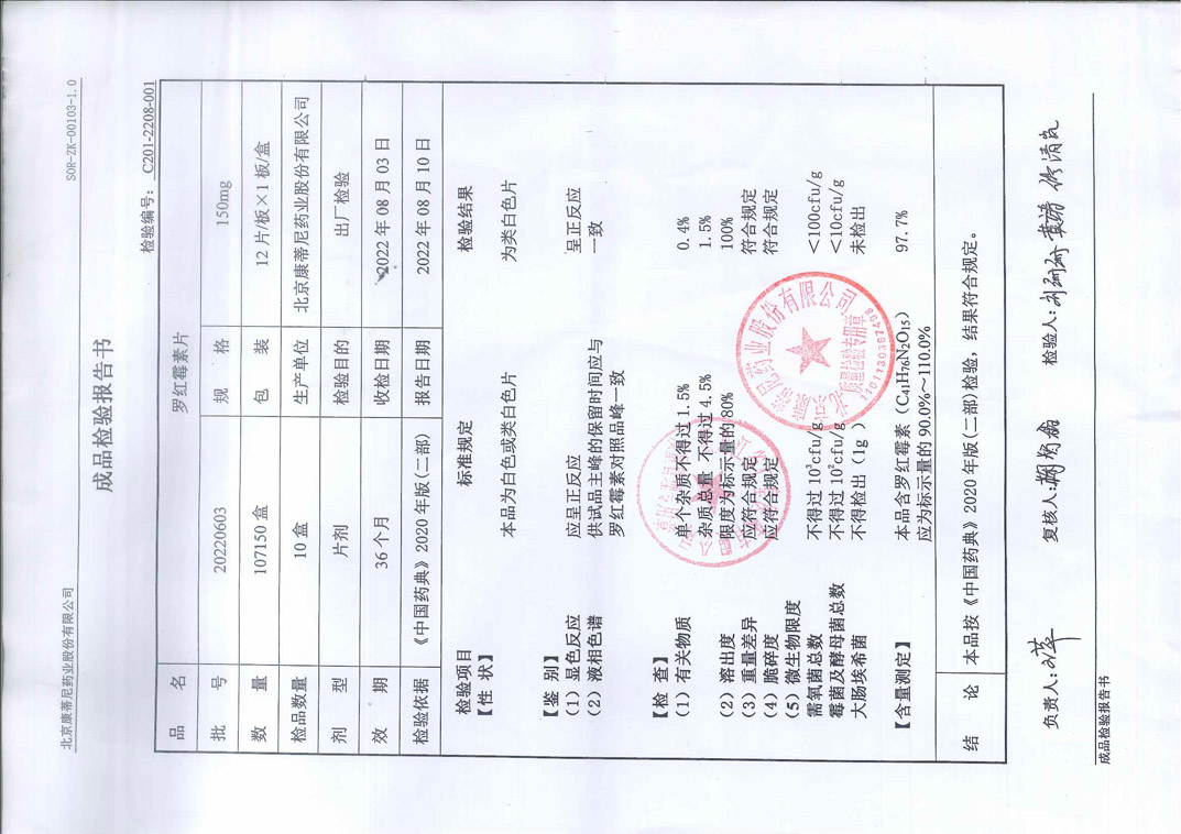 罗红霉素片20220