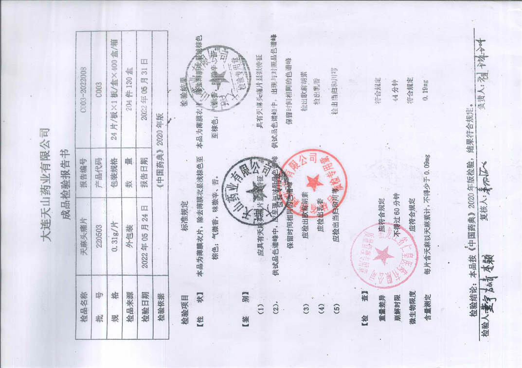 天麻头痛片22050